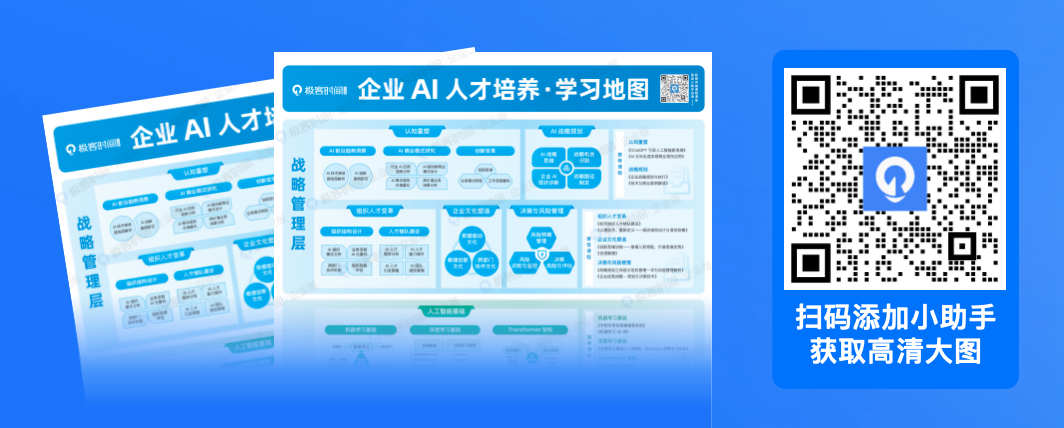 为持续深化企业 AI 人才培养服务,极客时间基于自主方法论《数智时代 AI 人才粮仓模型》,正式发布《企业 AI 人才培养·学习地图(2025 版)》。该地图将企业 AI 人才系统划分为战略管理层、技术研发层、业务应用层三大层级,并围绕各层级核心能力构建完整课程矩阵,助力企业精准开展分层培养。